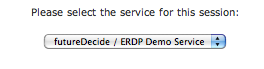 After logging in, use the pulldown menu to select the “futureDecide / ERDP Demo Service”. If you are only subscribed to one active service, this will be pre-selected.