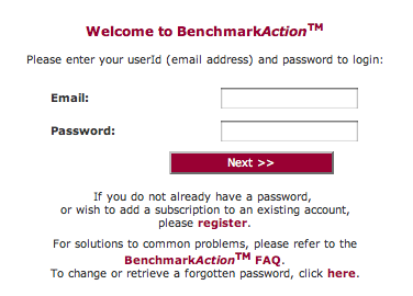 Ensure that you use the above URL to login. If you set a bookmark for subsequent logins, ensure that your bookmark contains only the URL specified above. Your login bookmark should not contain other parameters after “https://secure.benchmarkaction.com/benchmark”.